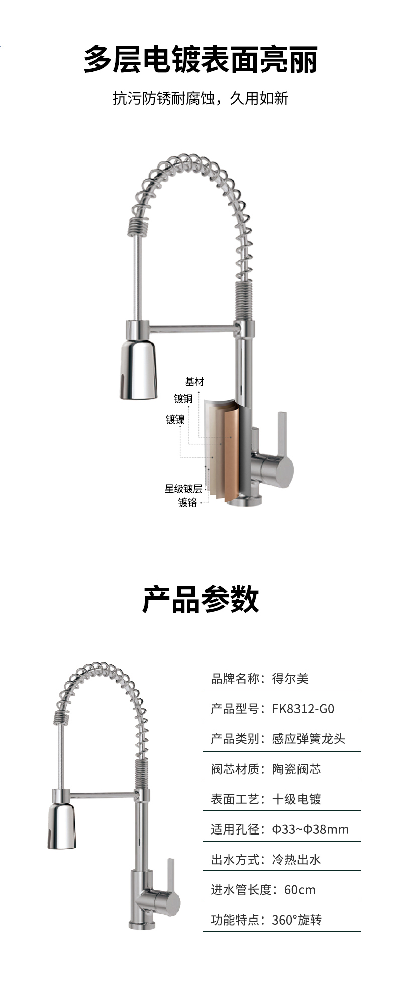 FK8312-C0 感應(yīng)下拉頭廚房彈簧龍頭